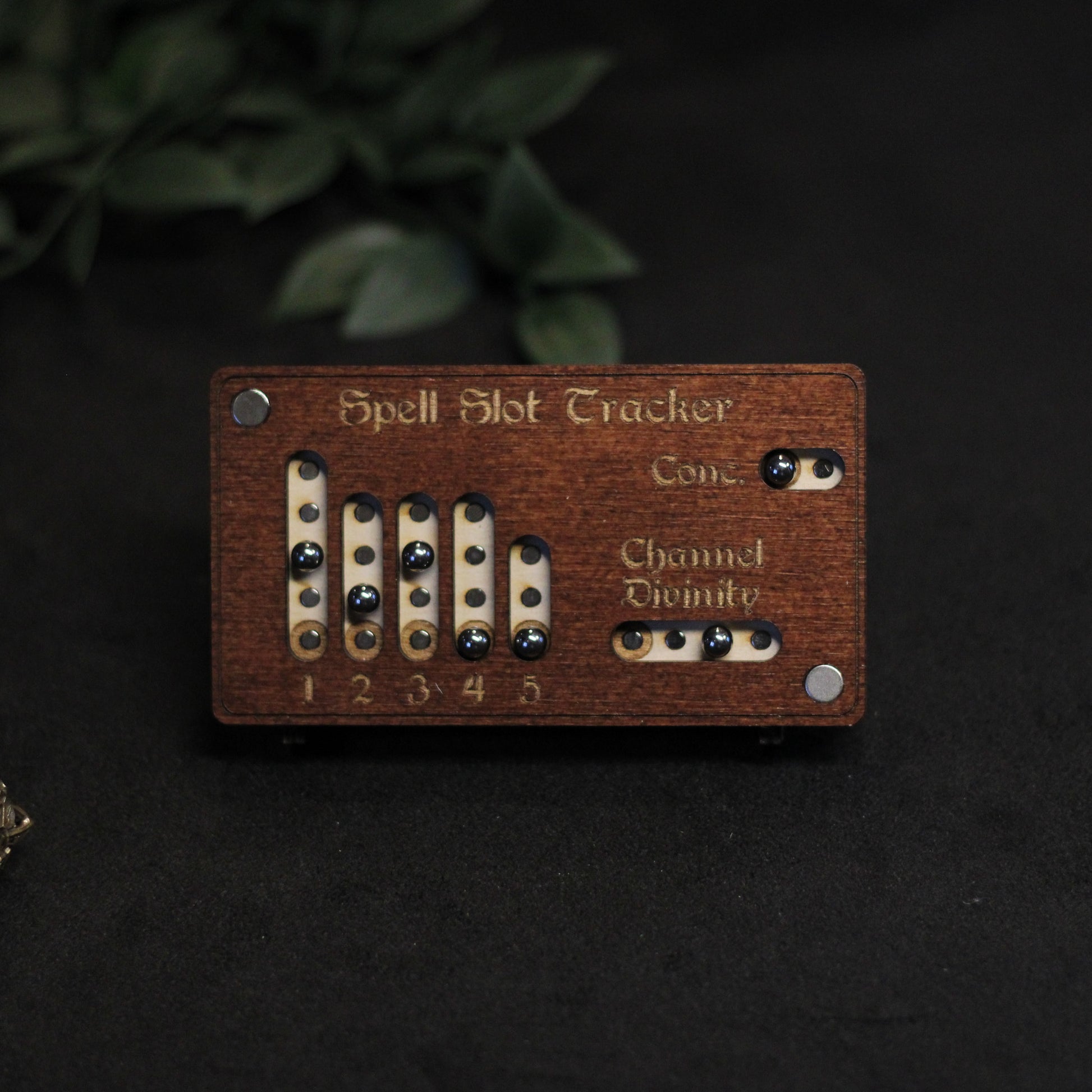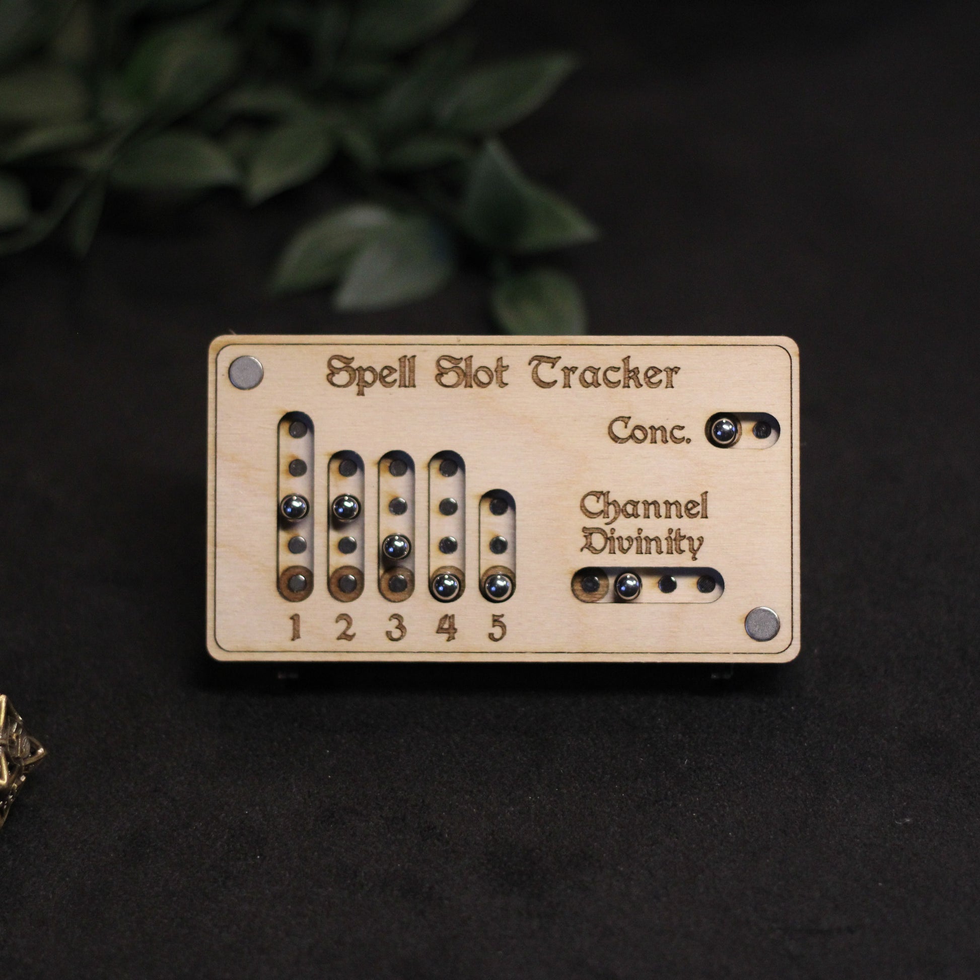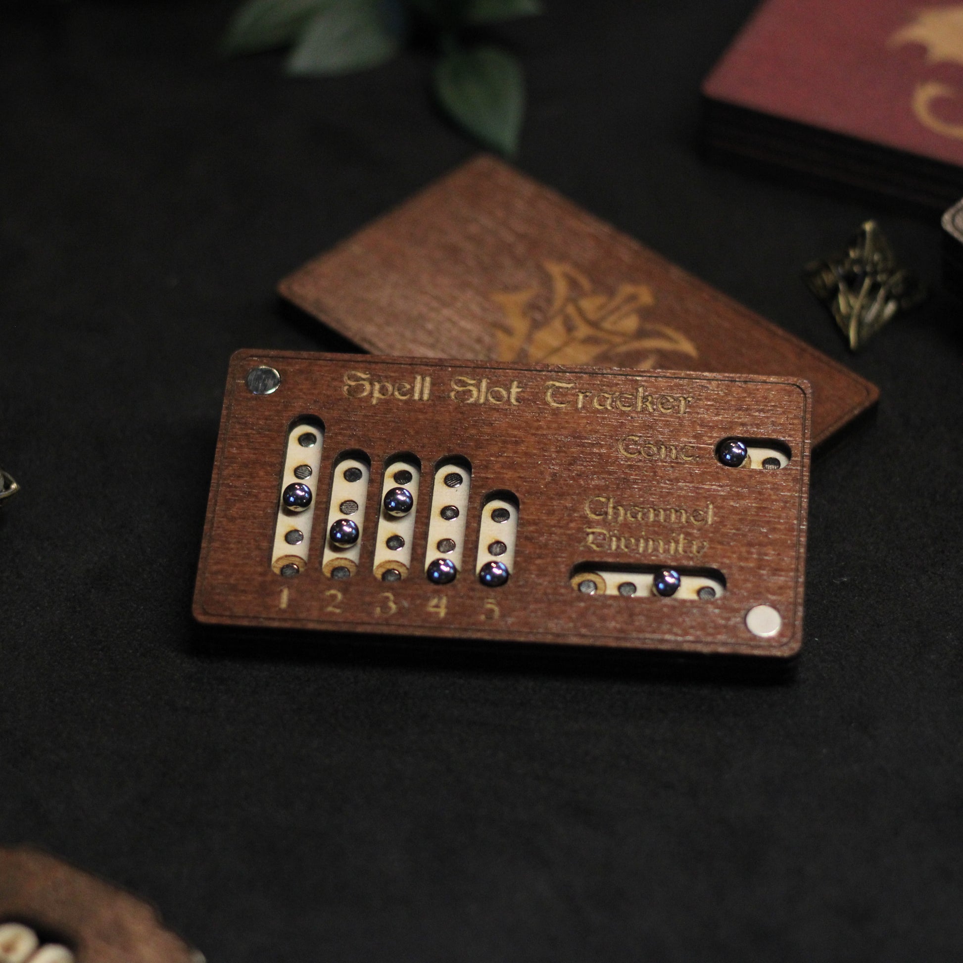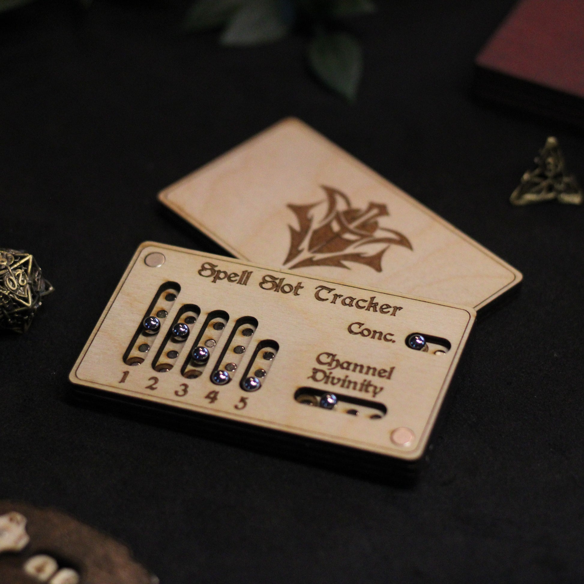Met deze houten spell slot tracker, speciaal gemaakt voor Paladins in Dungeons & Dragons, beheer je je goddelijke energie met precisie. Deze handgemaakte tracker houdt je spell slots, Channel Divinity en concentration bij, zodat je altijd weet hoeveel kracht nog door je zwaard stroomt!