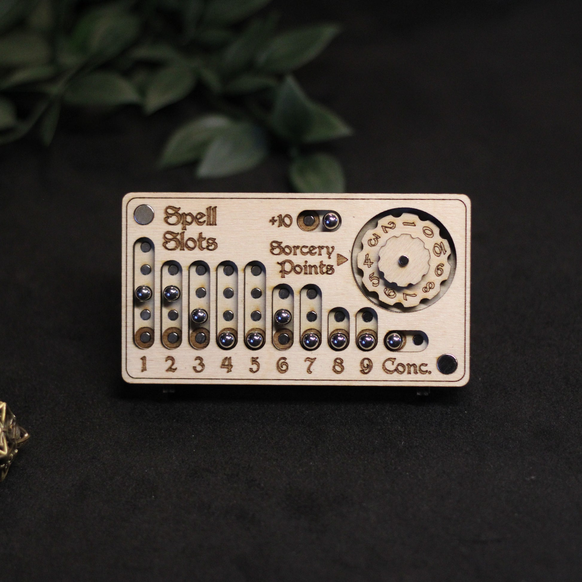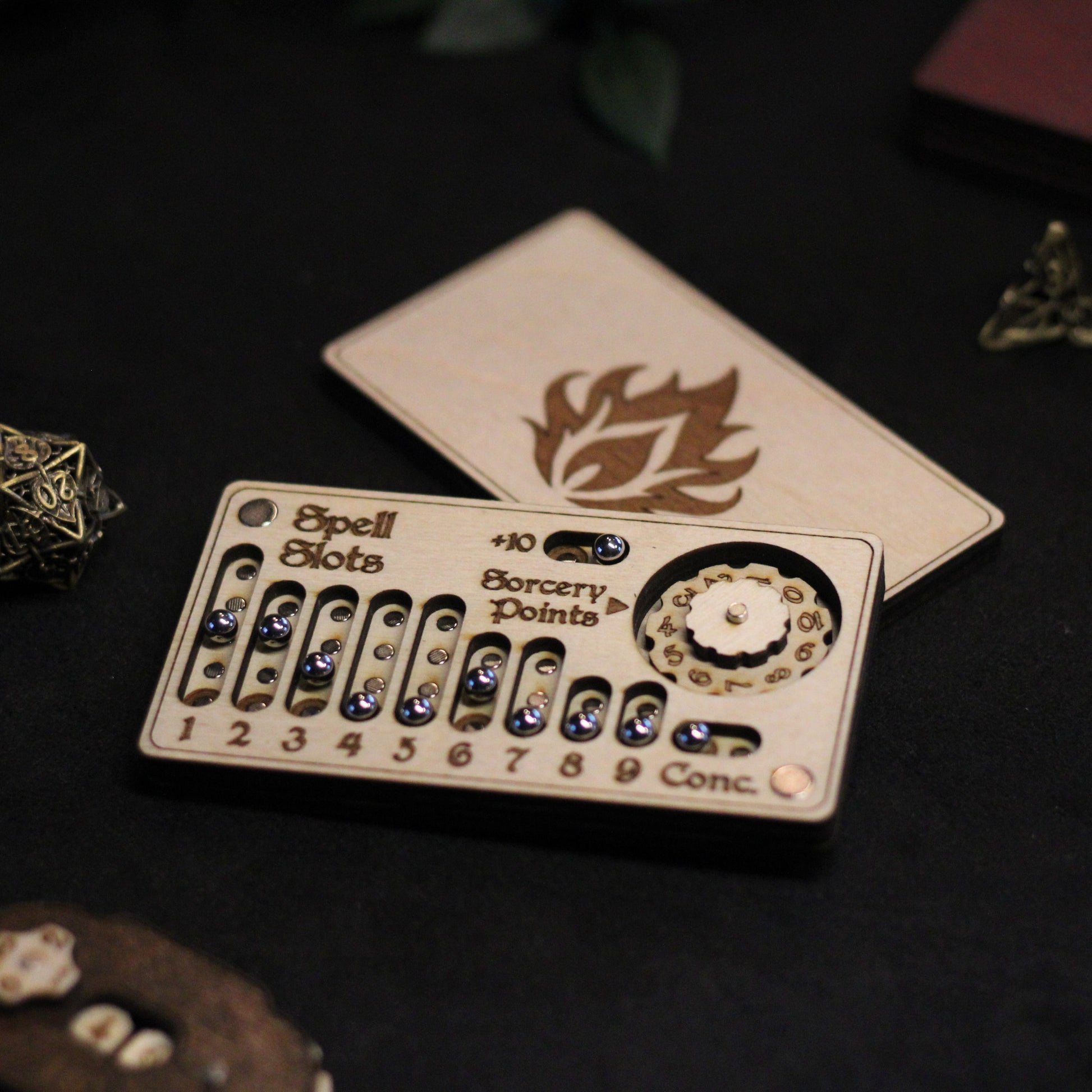 Houten spell slot tracker, speciaal ontworpen voor sorcerers in Dungeons & Dragons 5e. Met deze handgemaakte tracker houd je moeiteloos je spell slots, concentration en Sorcery Points bij, zodat je altijd weet hoeveel magische energie je nog kunt aanwenden. Ideaal voor spelers die overzicht willen behouden tijdens intensieve gevechten en lange adventuring days!