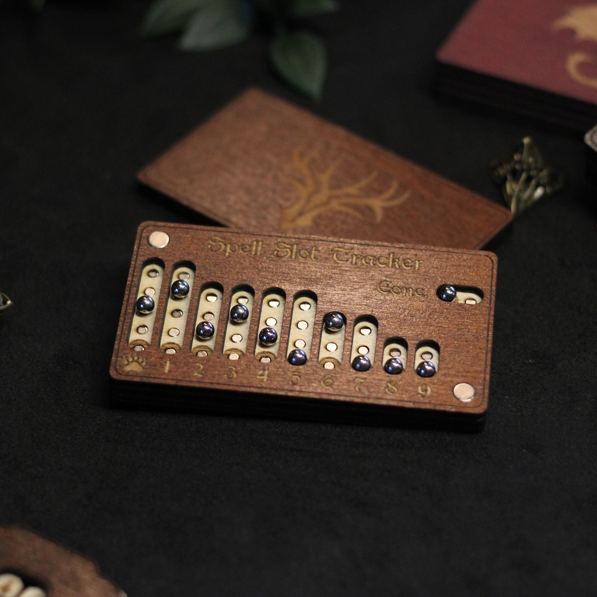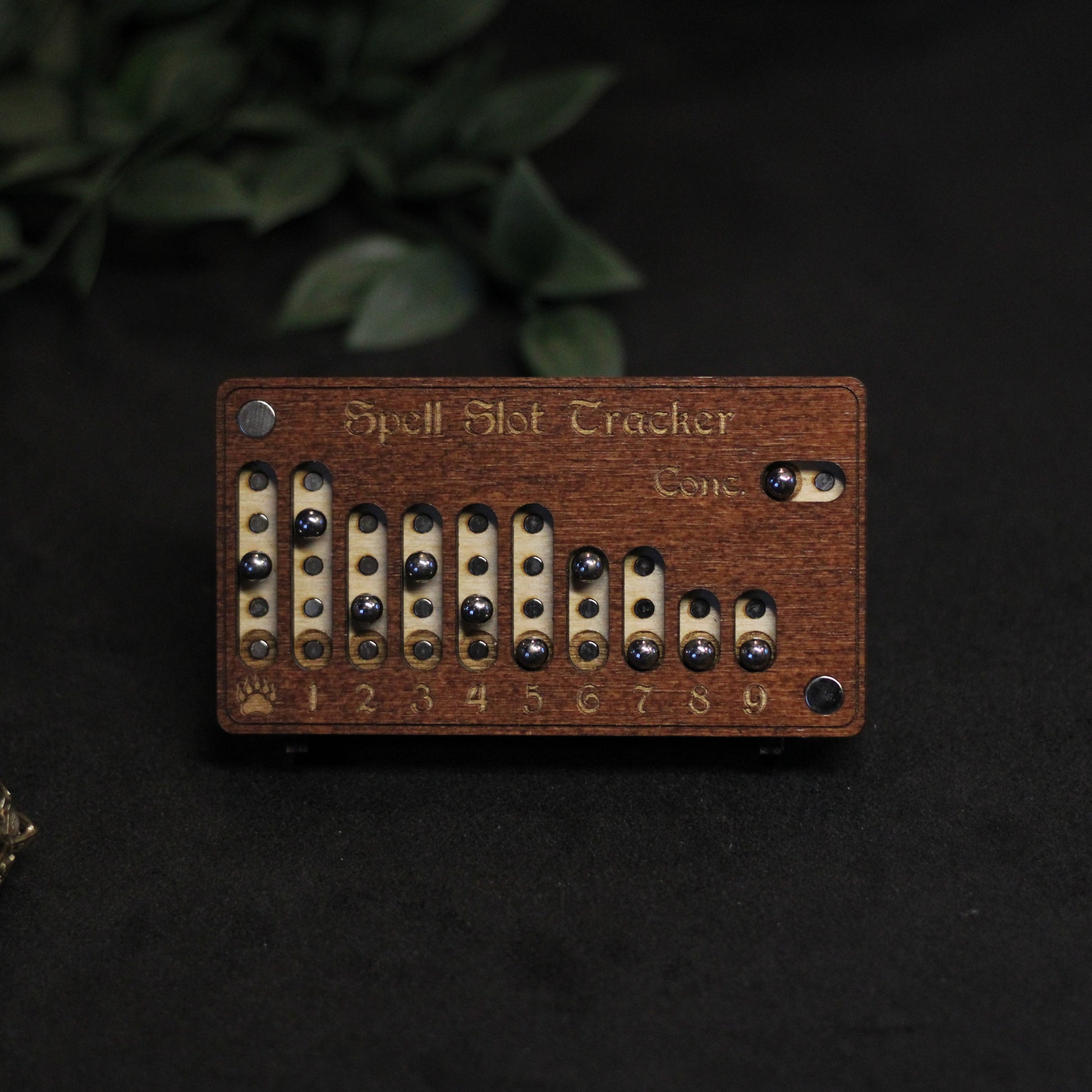 Deze houten spell slot tracker voor Dungeons & Dragons 5e is speciaal gemaakt voor druids. Houd je spell slots, Wild Shape en concentration bij met deze handgemaakte tracker, ontworpen voor druids die magie en natuur in balans willen houden.